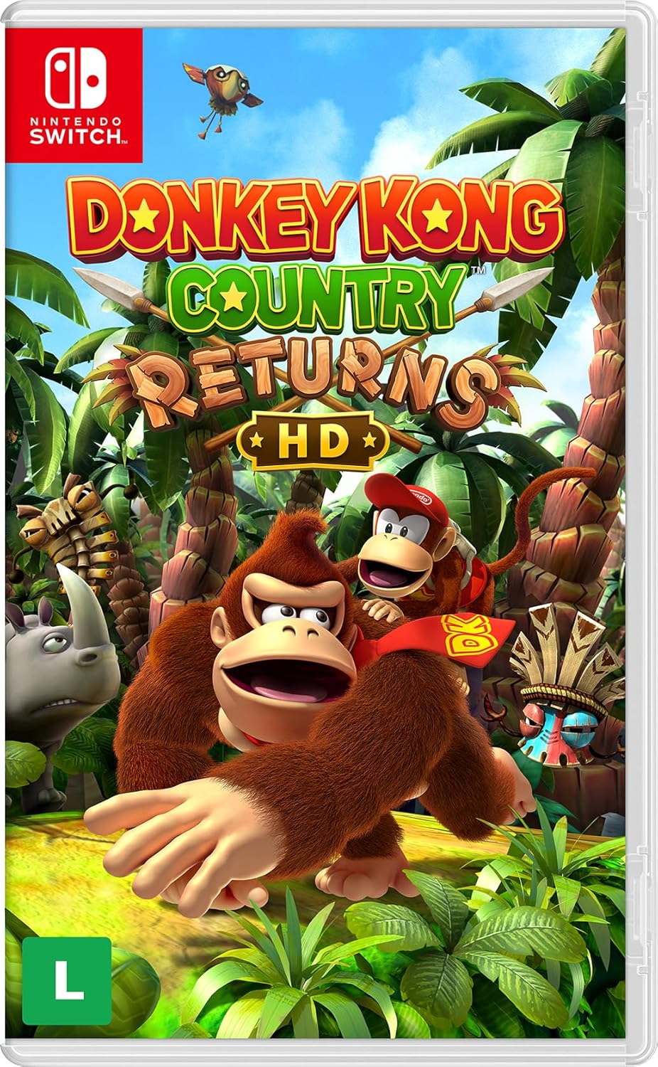 Donkey Kong Country Returns HD Salte, role e pise pela Ilha Donkey Kong em ação de plataforma 2D Ajude Donkey Kong e Diddy Kong a recuperarem seu precioso tesouro de bananas da abominável Tiki Tak Tribe! Pise nos inimigos, exploda barris e ande em foguetes e carrinhos de minas (e até mesmo em Rambi, o rinoceronte) em 80 níveis por nove mundos.